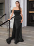 Black Strapless Ruched satin Evening Gown