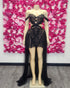 Black Corset top with black lace and tulle draped sleeve