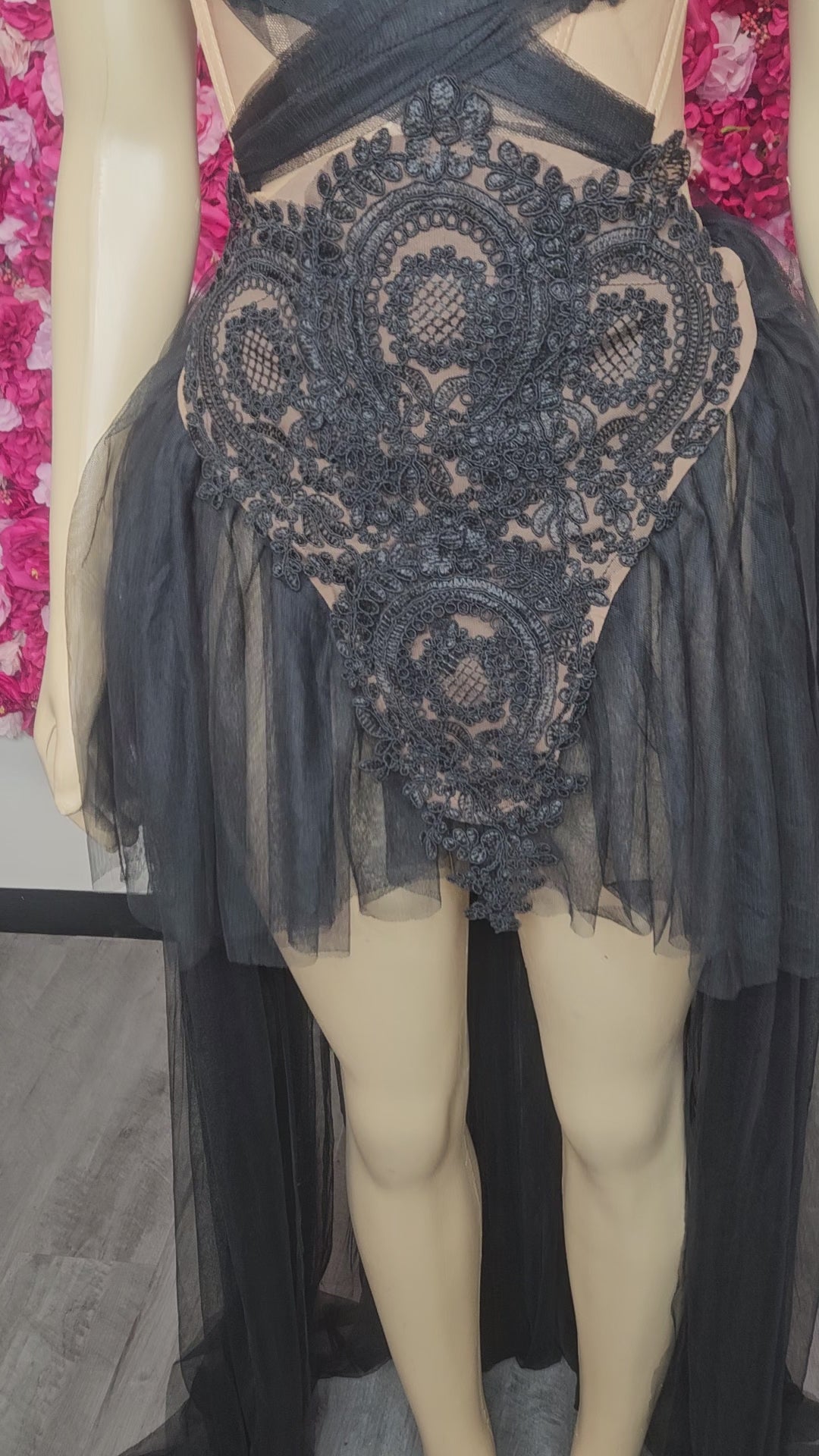 Black tulle Skirt with lace detail
