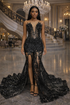 JET BLACK- Black Mermaid Prom Dress with Rhinestone Applique – Luxury Designer Evening Gown