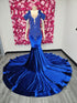 Mesh top with Royal Blue applique bodice,  blue rhinestone,  blue chain detail