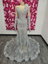 Corset top with boning, Silver Rhinestone fringe, Silver Rhinestone applique on bodice, tie closure